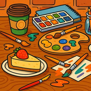 Junebug offers a cozy selection of coffee, tea, sodas, and sweet or salty snacks to enjoy while you create. Want something extra special? Ask about our custom creative food options—like art-themed cupcakes, cookies, and treats—perfect for parties, workshops, or just a fun day out!